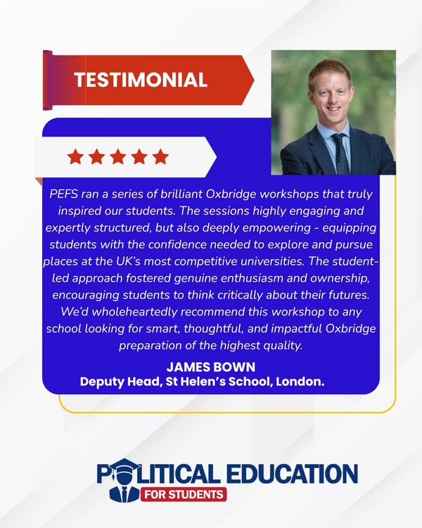 Our Founder and Director, James, runs two Oxbridge workshops for current and future prospective Oxbridge candidates: "Oxbridge Aspirations?" and "Oxbridge Applications".